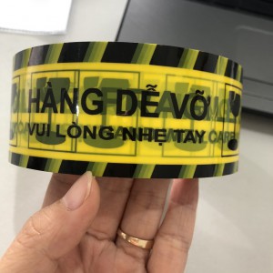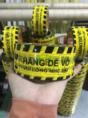 - Băng keo bọc hàng dễ vỡ là loại băng keo được đính 2 tông màu chủ đạo chính là màu vàng và màu đen. Nó được in sẵn dòng chữ “Hàng dễ vỡ” hoặc FRAGILE